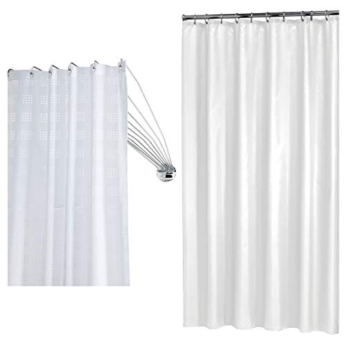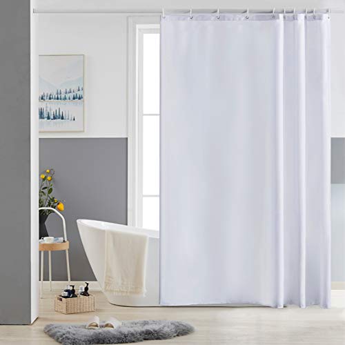 Furlinic Rideau de Douche Anti Moisissure Tissu en Polyester Imperméable Rideaux de Douche Textile Lavable pour Baignoire ou la Salle de Bain 16 Crochets de Rideau Douche-Blanc Extra Long 244x200cm.