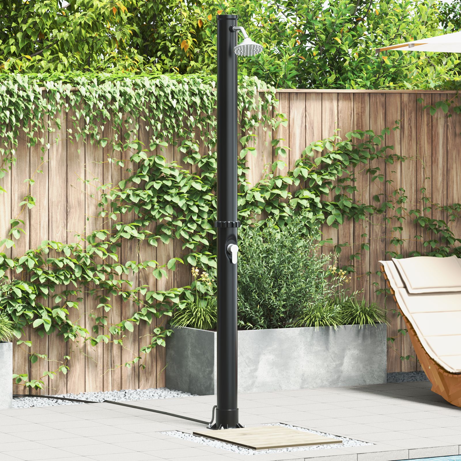 Mokuyary Douche Solaire extérieure Noir 217 cm PVC et Aluminium, Douche de Jardin pour Camping, Jardin, Piscine, Extérieure -B 3420034091