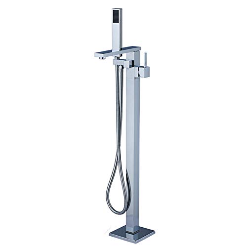 Robinet de lavabo de Baignoire monté au Sol, Ensemble de Douche de Salle de Bain à poignée Unique, mitigeur de Baignoire sur Pied avec douchette à Main, Brosse en Or Rose