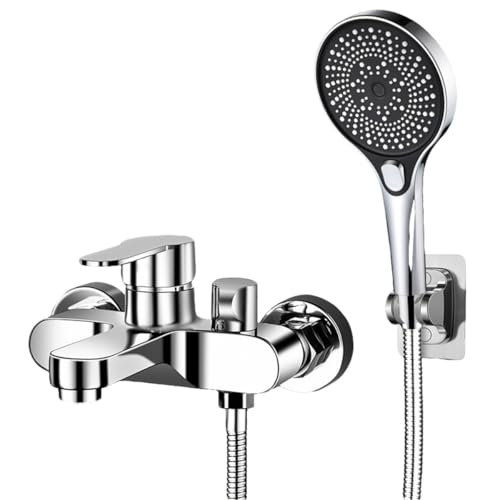 MOCHAMIK Robinet de Baignoire Large en Laiton avec douchette à Main, Robinet de lavabo de Salle de Bains à poignée Unique, Montage sur Pont à 3 Trous, Finition de Haute qualité, Installation Facile