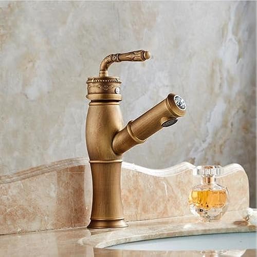 KMXNSJZS Robinet De Lavabo en Laiton Antique, Mitigeur Monocommande, Style Vintage, Montage sur Plage, Douchette Extractible Eau Chaude/Eau Froide, 8032G