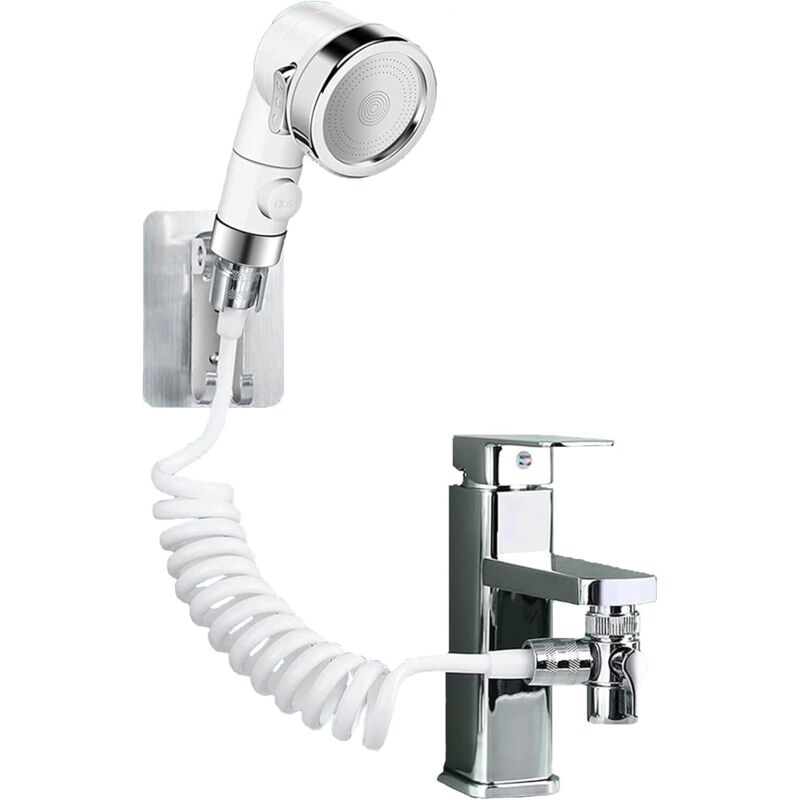 Douchette Robinet pour Mélangeur Plastique, Douchette Tuyau Lavabo Universelle Adaptable sur Robinet, Douchette Coiffure à domicile, Bain Bébé,