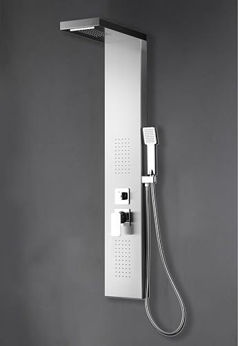 Marwell Enya Ensemble de douche en acier inoxydable brossé 121 x 20 cm avec 4 différentes fonctions de douche cascade, douche à effet pluie, douche massante et douchette à main anti-calcaire