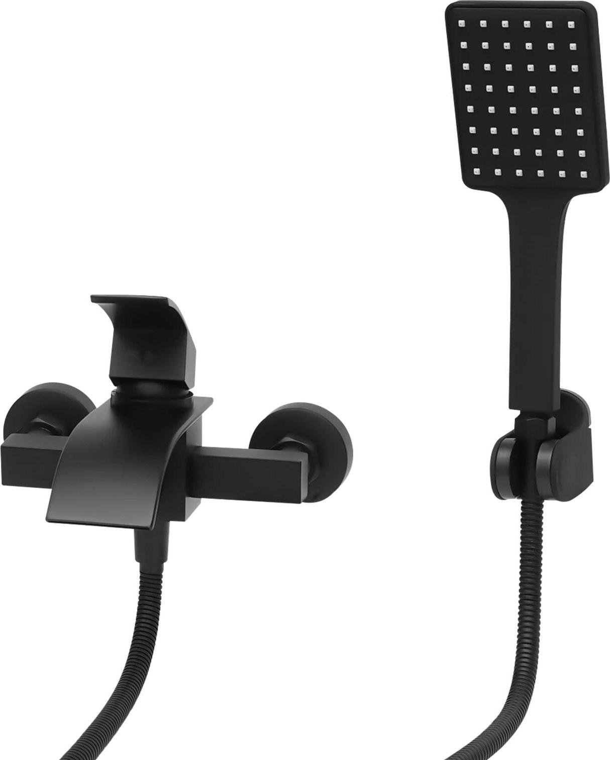 Wowkk Robinet de baignoire à montage mural en forme de cascade pour baignoire romaine noir à poignée unique en laiton avec douchette à main