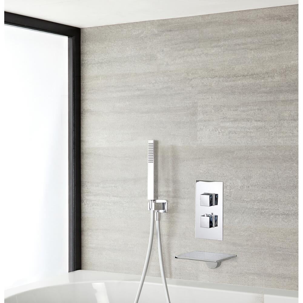 Mitigeur de douche thermostatique avec douchette et bec cascade – Chromé – Double fonction - Kubix