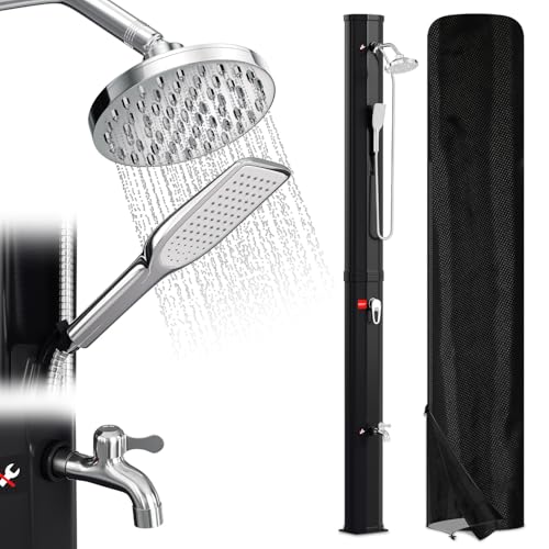 Randaco Douche Solaire de Jardin - Eau Chaude jusqu'à 60 °C - sans raccordement électrique - Douche de Piscine - Camping avec douchette à Pied et douchette à Main - Tête de Douche à Effet Pluie