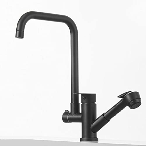 Robinets de Cuisine avec douchette extractible, Robinet de Cuisine Noir, Eau Chaude et Froide, Robinet d'évier pivotant à Trou Unique-D