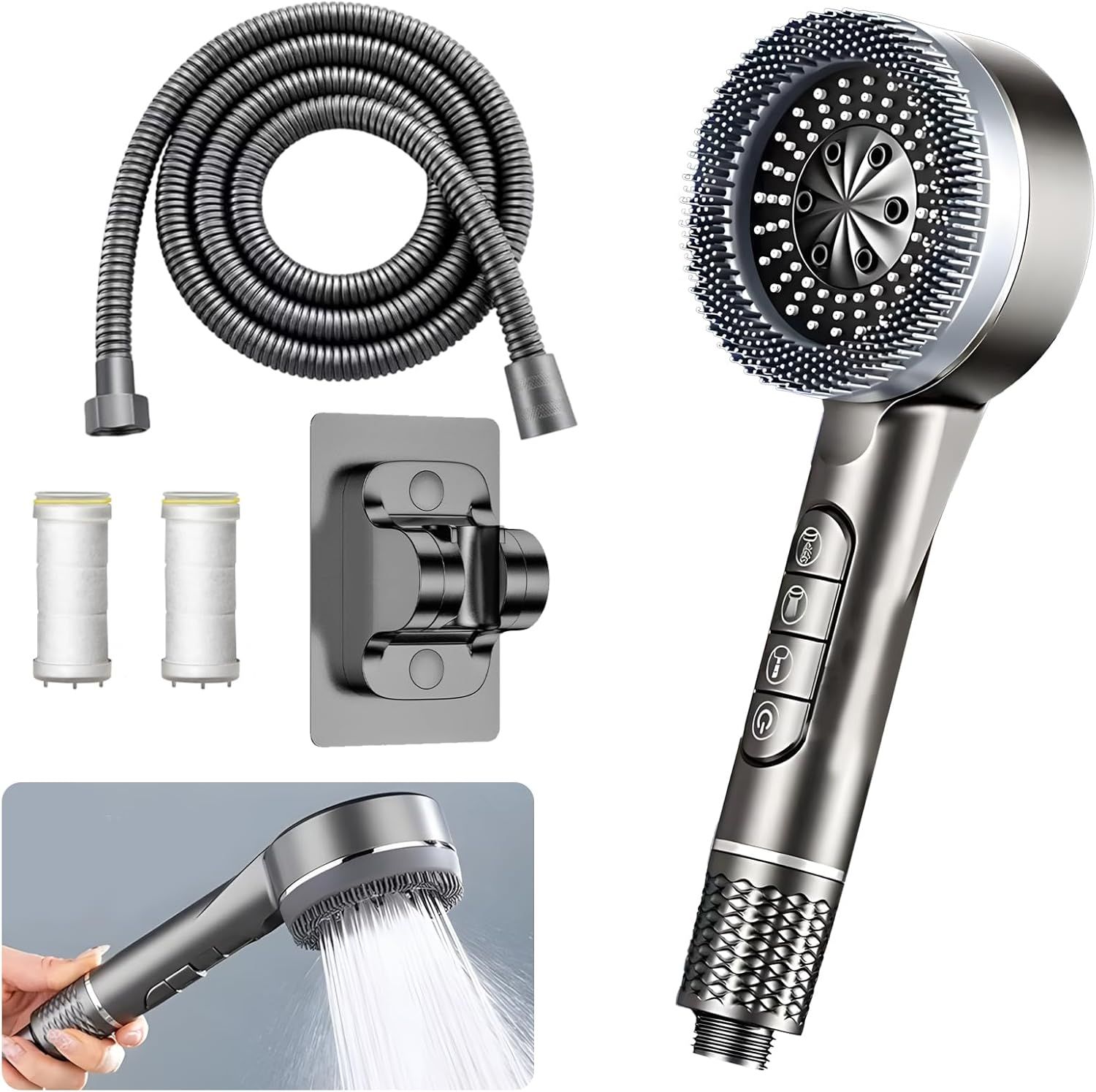 Pommeau de Douche Haute Pression Anti CalcaireDouchette Économiseur d'Eau Salle de BainFiltre à Trois Niveaux Système de Filtrage avec 3 Packs Minérale Balles Remplaçable