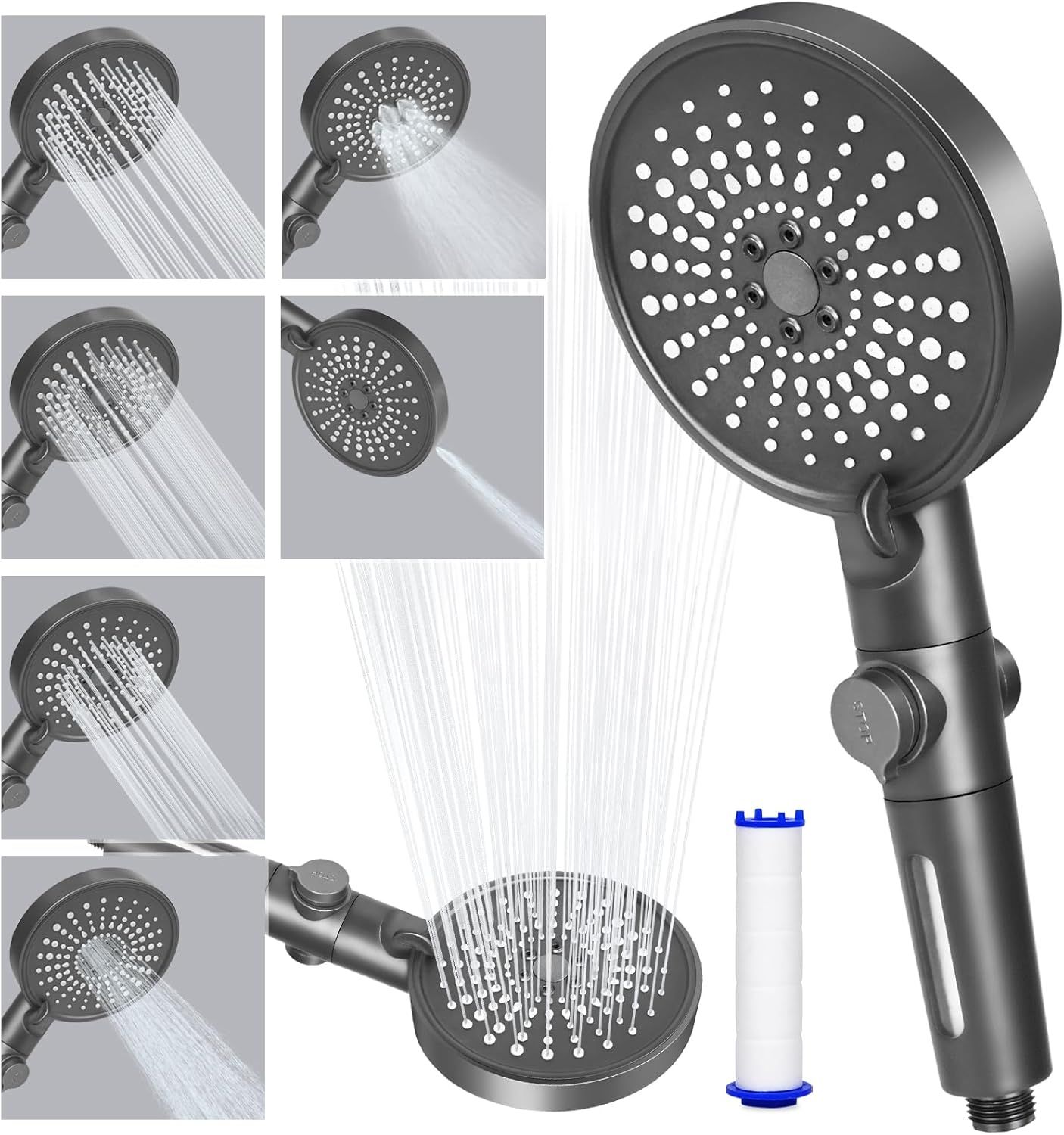 VIOU-Tête De Douche Haute Pression,Douchette À Main Avec Filtre À Eau,6 Jets Réglables,Économiseur D'Eau,Facile À Installer,Design Moderne