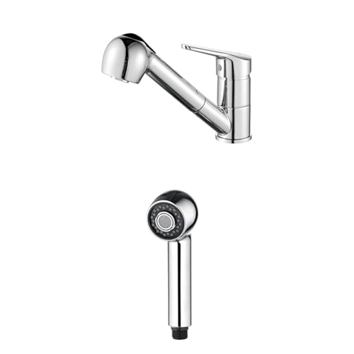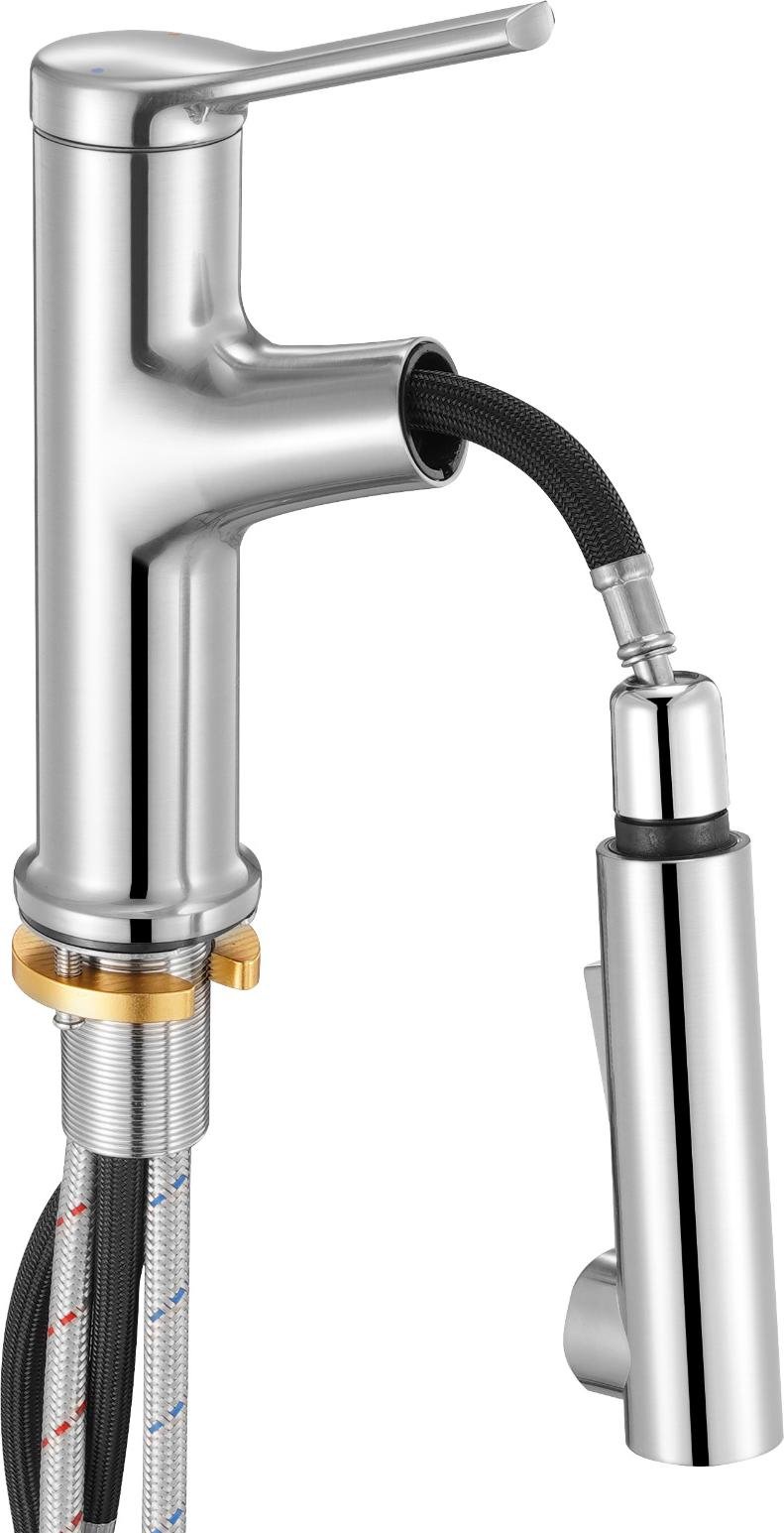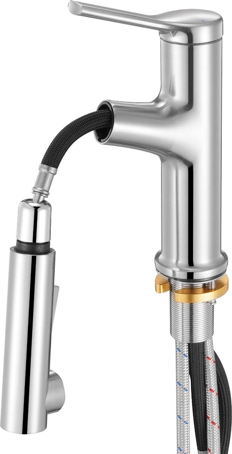 SucceBuy Robinet de lavabo en nickel brossé et acier inoxydable, robinet avec douchette extractible, économiseur d'eau et mitigeur pour salle de bain, camping-car ou évier de bar