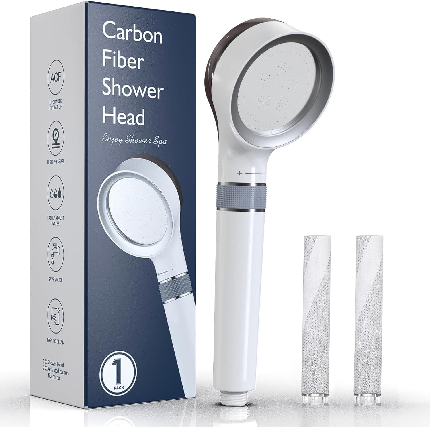 Pommeau de Douche Filtre Anti Calcaire, Douchette Filtrant Anti Chlore Haute Pression Economiseur d'eau, Pulvérisateur de Pomme de Douche Salle de Bain Fibre Carbonique