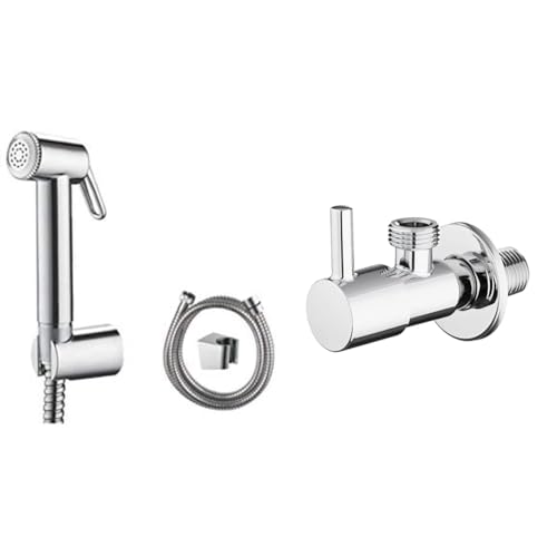Ibergrif - Douchette WC avect Support et Flexible, Pomme de Douche, Chrome & M22025-1/2 Robinet d'Arret de Régulation avec Poignée, Robinet Équerre (1/2" * 1/2") pour Cuisine et Salle de Bains, Chromé