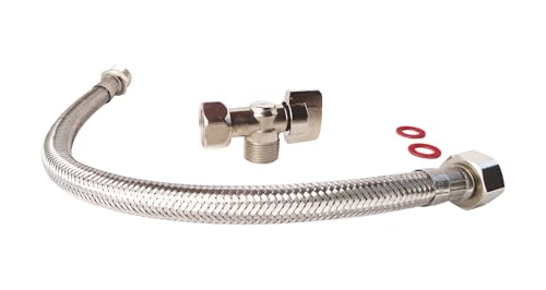 SOMATHERM FOR YOU - Kit de raccordement WC complet avec un robinet de WC équerre 1/4 de tour nickelé 12/17 (3/8''), un flexible M12/17 (3/8'') -F12/17 (3/8''), 2 joint