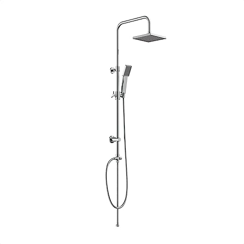 Cornat SA330103 Système Werkzeyt « Carballo » -Chromé-Pommeau carré et douchette à Main avec 1 Type de Jet-Fonction Anti-calcaire-Kit Complet de Douche avec Tube montant-SA330103