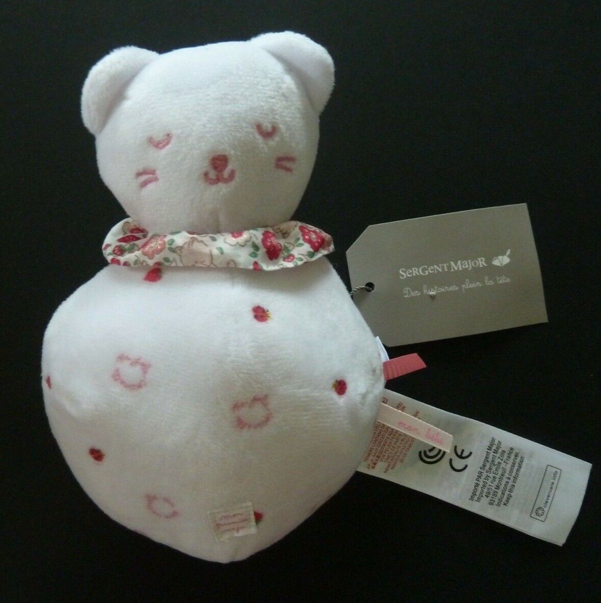 W7. DOUDOU BOULE SERGENT MON PREMIER MAJOR CHAT BLANC ROSE ma jolie coccinelle