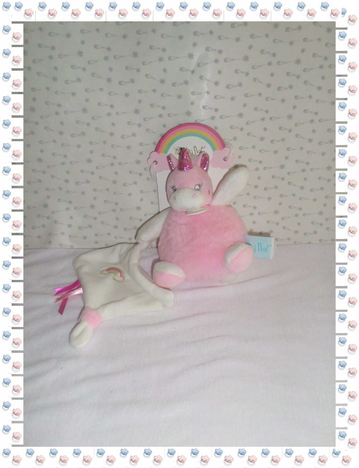 ♥ - Doudou Peluche Boule Licorne Blanc Rose Doré Poussière d'Etoiles Baby Nat