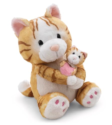 62843 Doudou Chat, 20 cm, avec Enfant Chat, 6 cm, Marron, Peluche Douce et Mignonne, pour câliner et Jouer, pour Enfants et Adultes, idée Cadeau