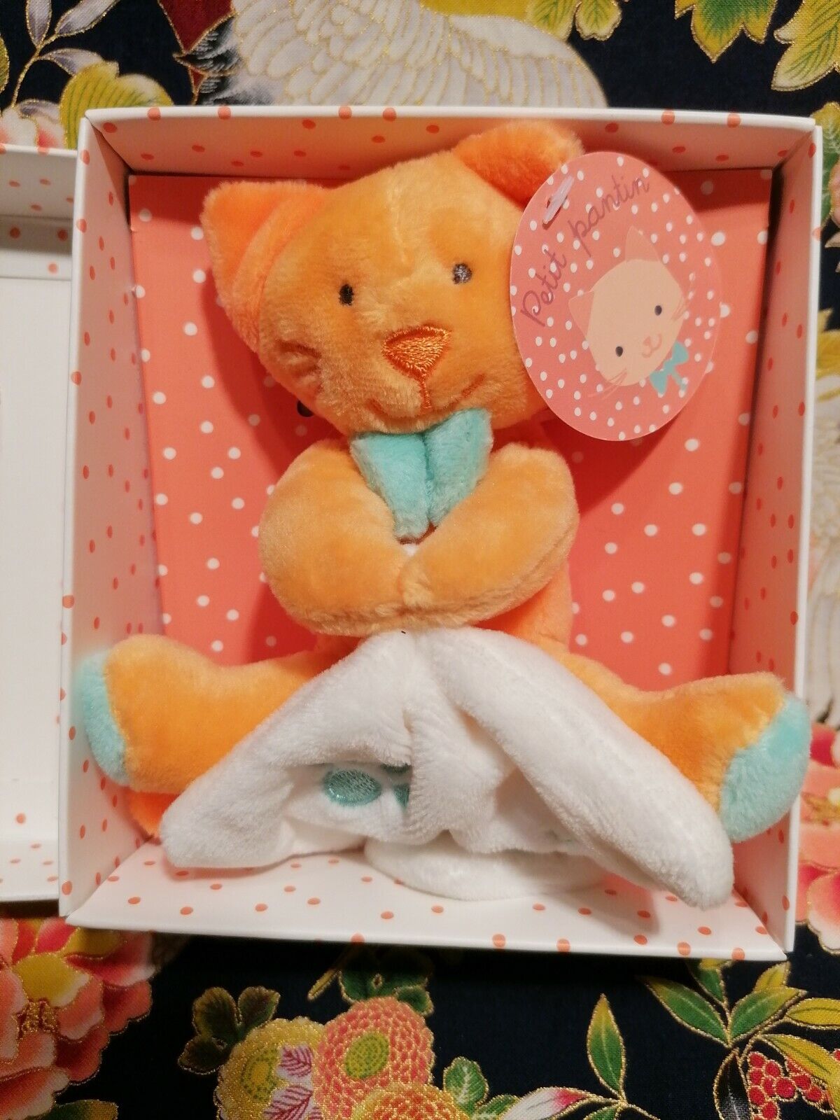 ⭐⭐⭐Doudou Petit pantin Chat Orange Bleu mouchoir BABYNAT éclats de rires ⭐NEUF