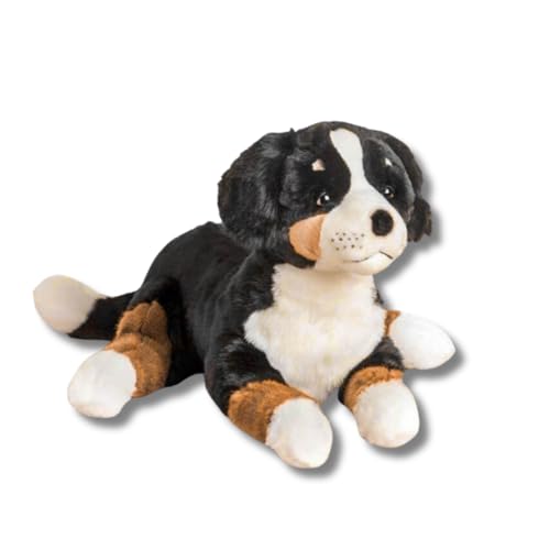 La Pelucherie - Ma Peluche Chien Ferdinand - Grand Assis 60 cm Noir Brun et Blanc - Doudou Chien Tout Doux pour Bébé - Peluche Réaliste et Fabriquée Main - Garantie à Vie - Marque Française
