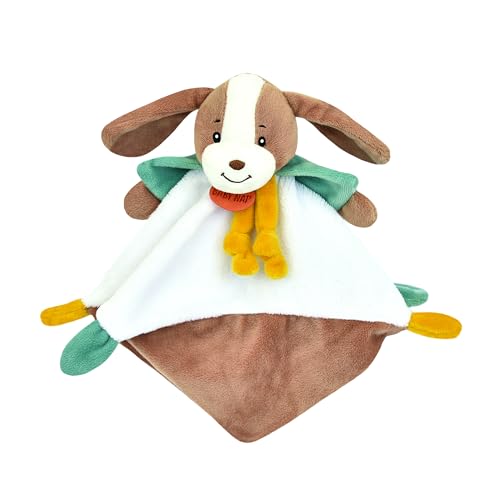 PERLETTI Couverture Bebe avec Animal en Peluche Douce - Plaid Beige avec Doudou Chien Petit Enfant 0 1 2 3 Ans - Cadeau de Naissance Bebe Fille Garcon Coloré Moelleux Chaud - 120x80 cm (Chien)
