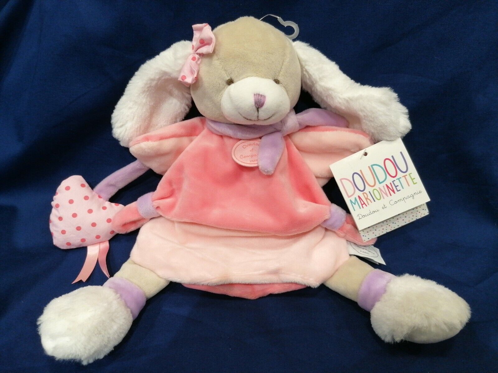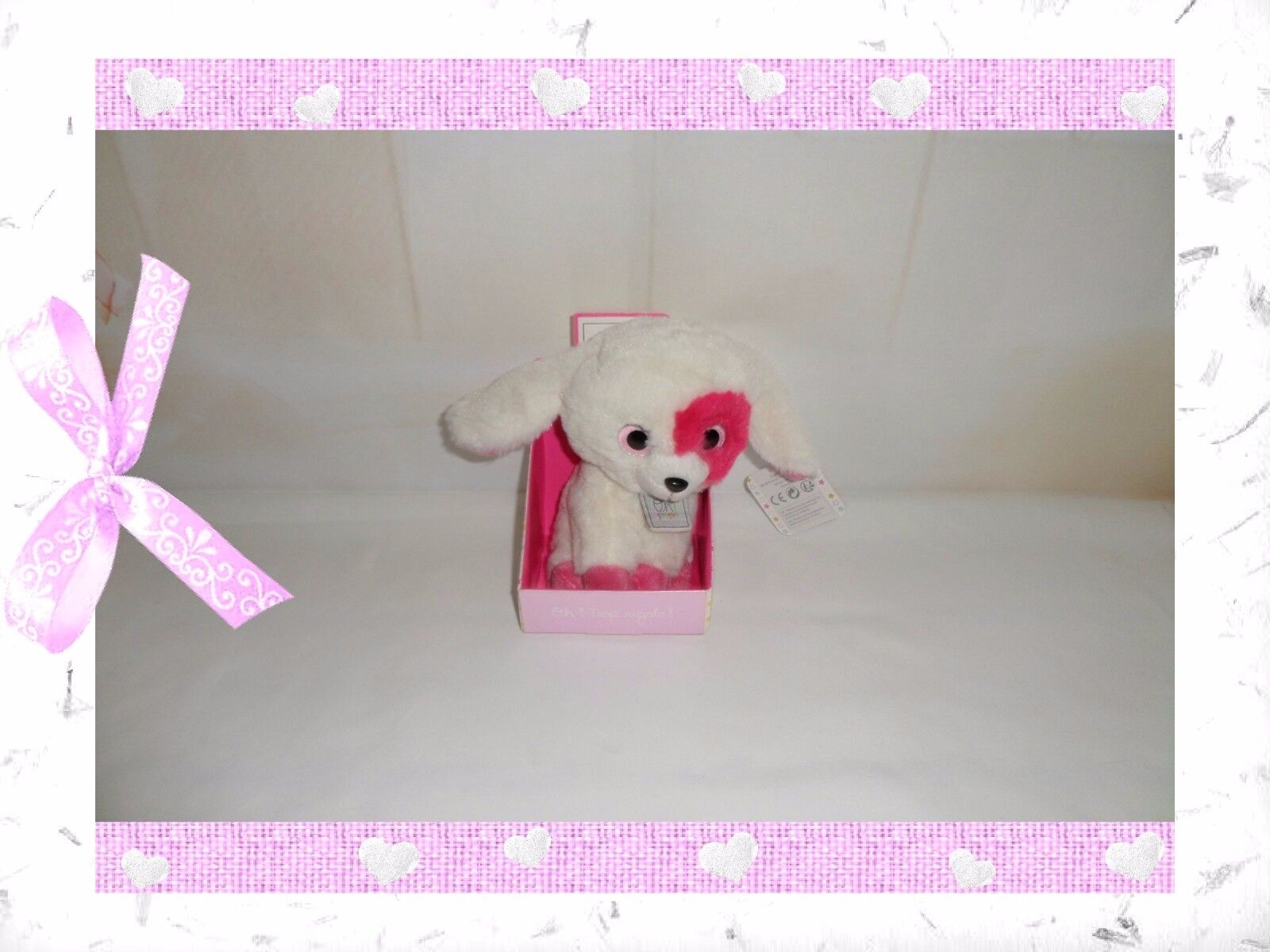 ⭐⭐⭐ Doudou et compagnie Chien Noopette marionnette rose blanc cœur NEUF