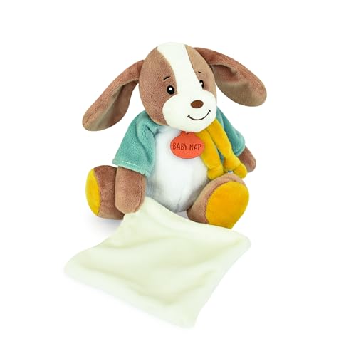 Baby Nat' - Premier Doudou Lucien Le Chien 23 cm - Peluche Naissance Mixte Bébé Fille Garçon - Compagnon Éveil Apaisant avec Oreilles Souples et Nouettes Motricité Fine - Idée Cadeau Bébé - BN6028