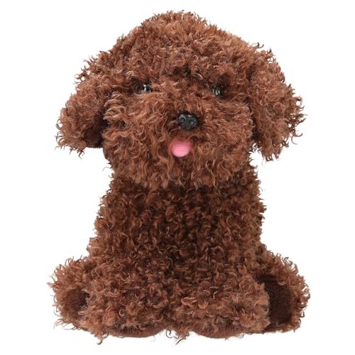 Depesche 13514 TOPModel - Doudou Chien en Marron, Peluche d'environ 16 cm au Pelage bouclé et à la Langue Rose