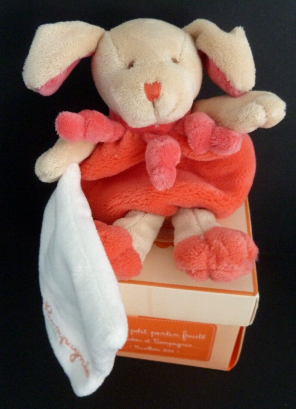 F4. DOUDOU ET COMPAGNIE CHIEN CUEILLETTE rose mouchoir blanc 16cm - 100% NEUF