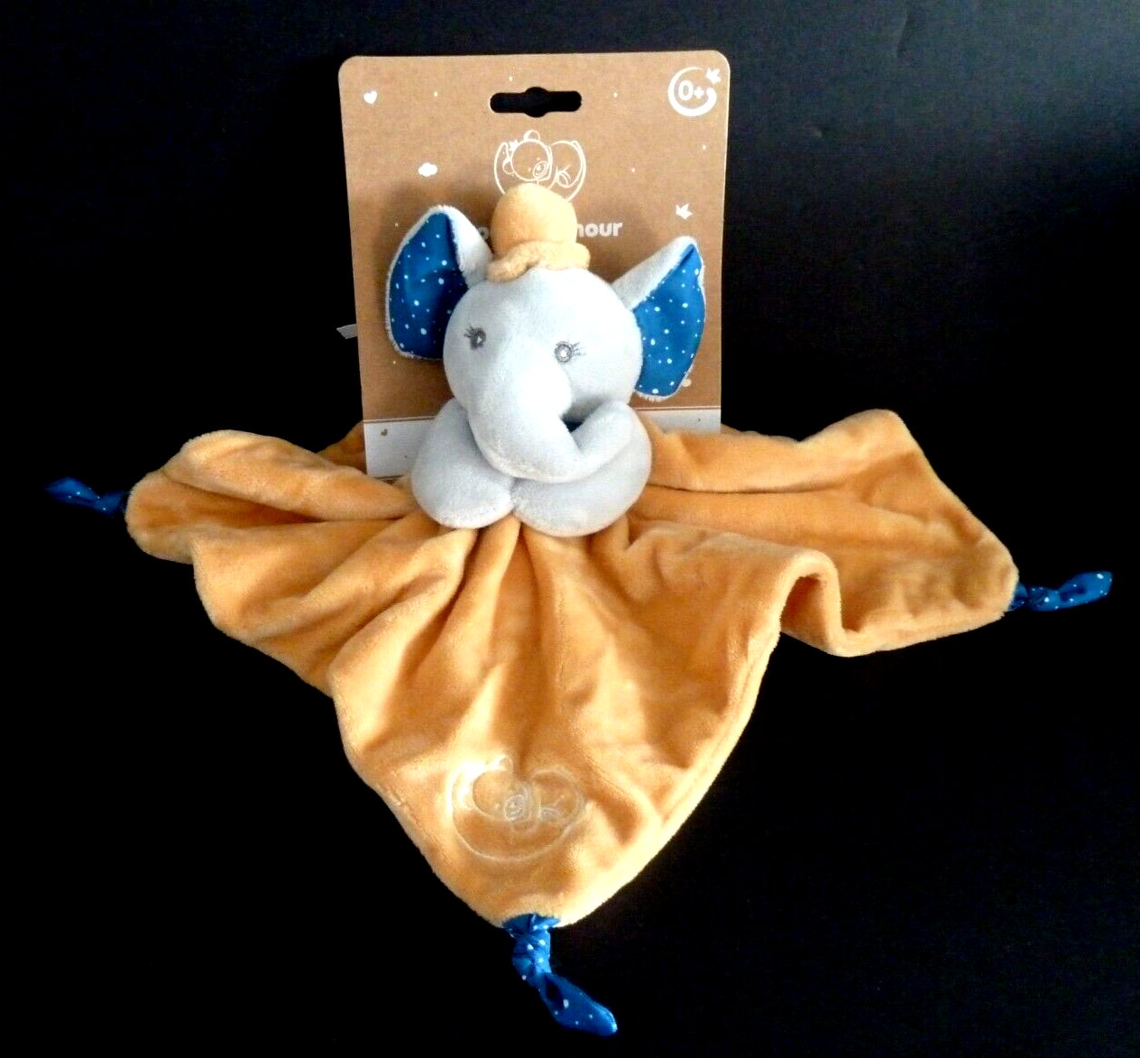 DC3. DOUDOU PLAT MGM DODO D'AMOUR ELEPHANT carré jaune bleu gris chapeau - NEUF