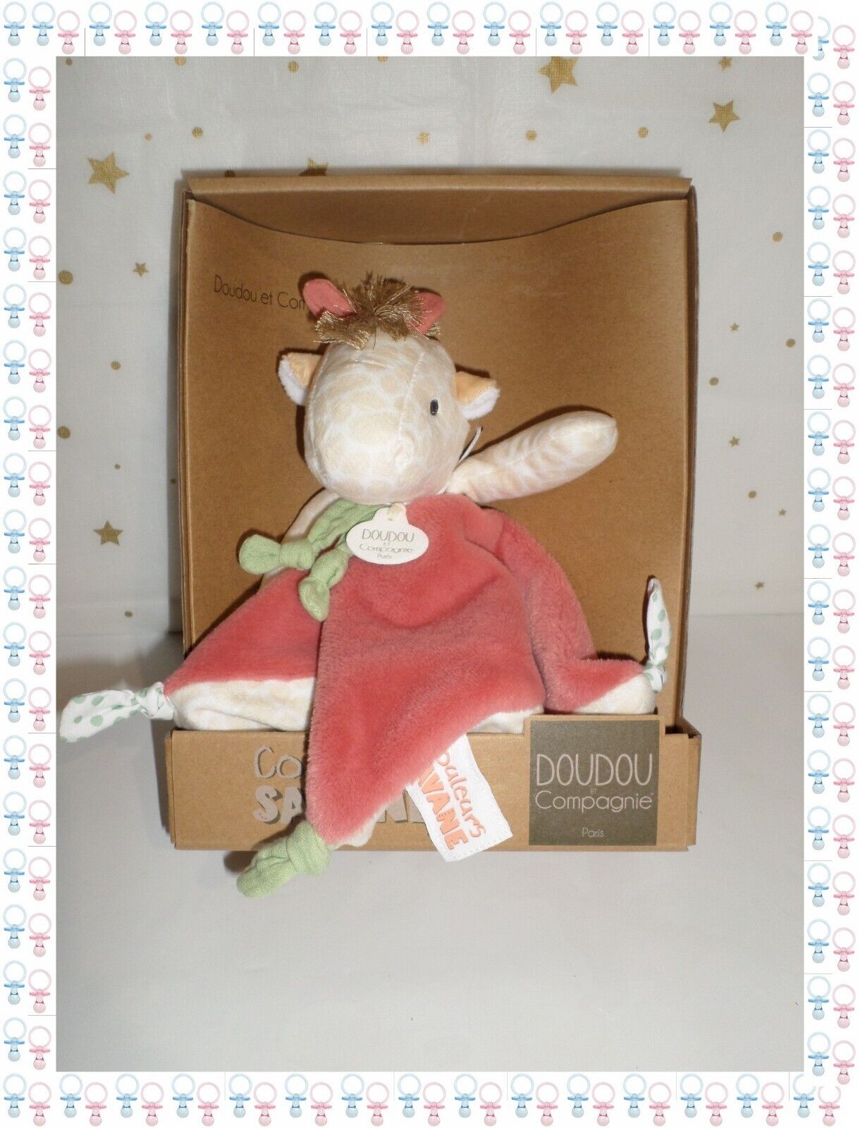 ◘ - Doudou Semi Plat Carré Girafe Beige Rose Couleurs Savane Doudou et Compagnie