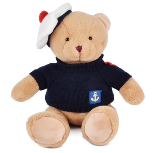 Doudou et Compagnie - Porte Clé Ours Peluche Marin - 15 cm - Ours Beige avec Pull Bleu Marine et Béret Pompon Rouge - Souvenir Maritime Français - Cadeau Peluche Enfant et Adulte - SP4538