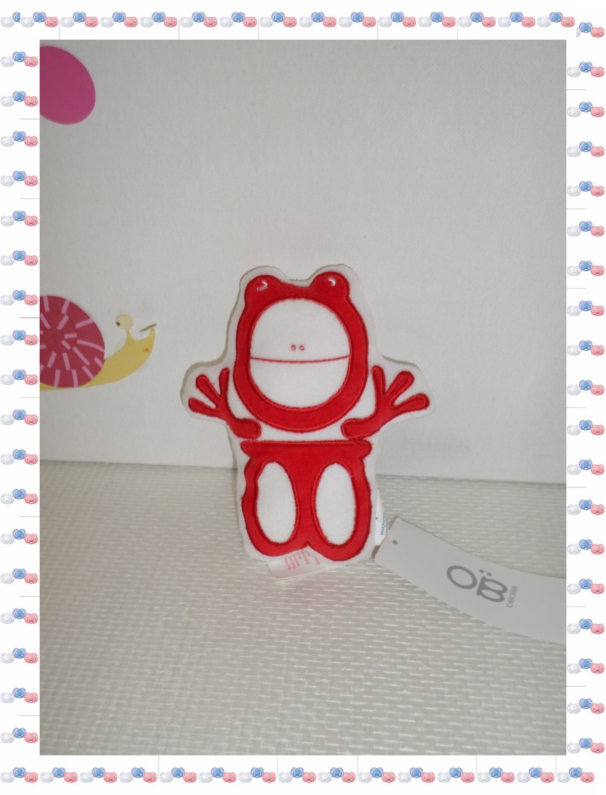 $ - Doudou Hochet Grenouille Blanc Rouge Il fait beau aujourd'hui Obaibi Okaidi