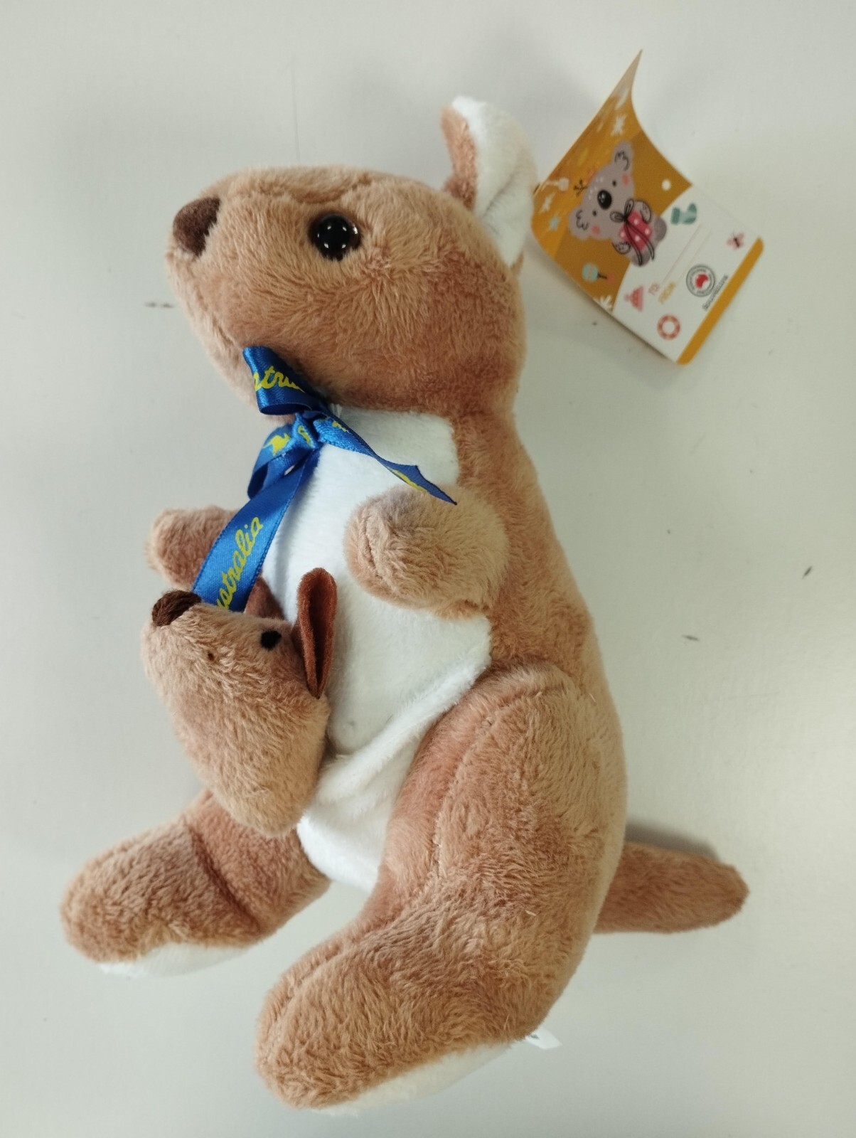 Peluche Maman Kangourou avec son bébé 19cm Ruban Australia doudou souvenir /EBVB