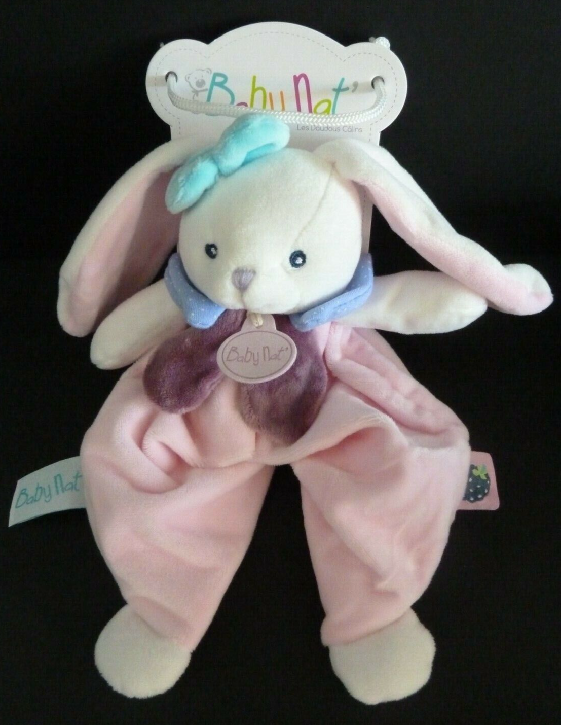 *. Doudou plat Baby Nat Berry BN0242 lapin rose blanc bleu mure 100% Neuf