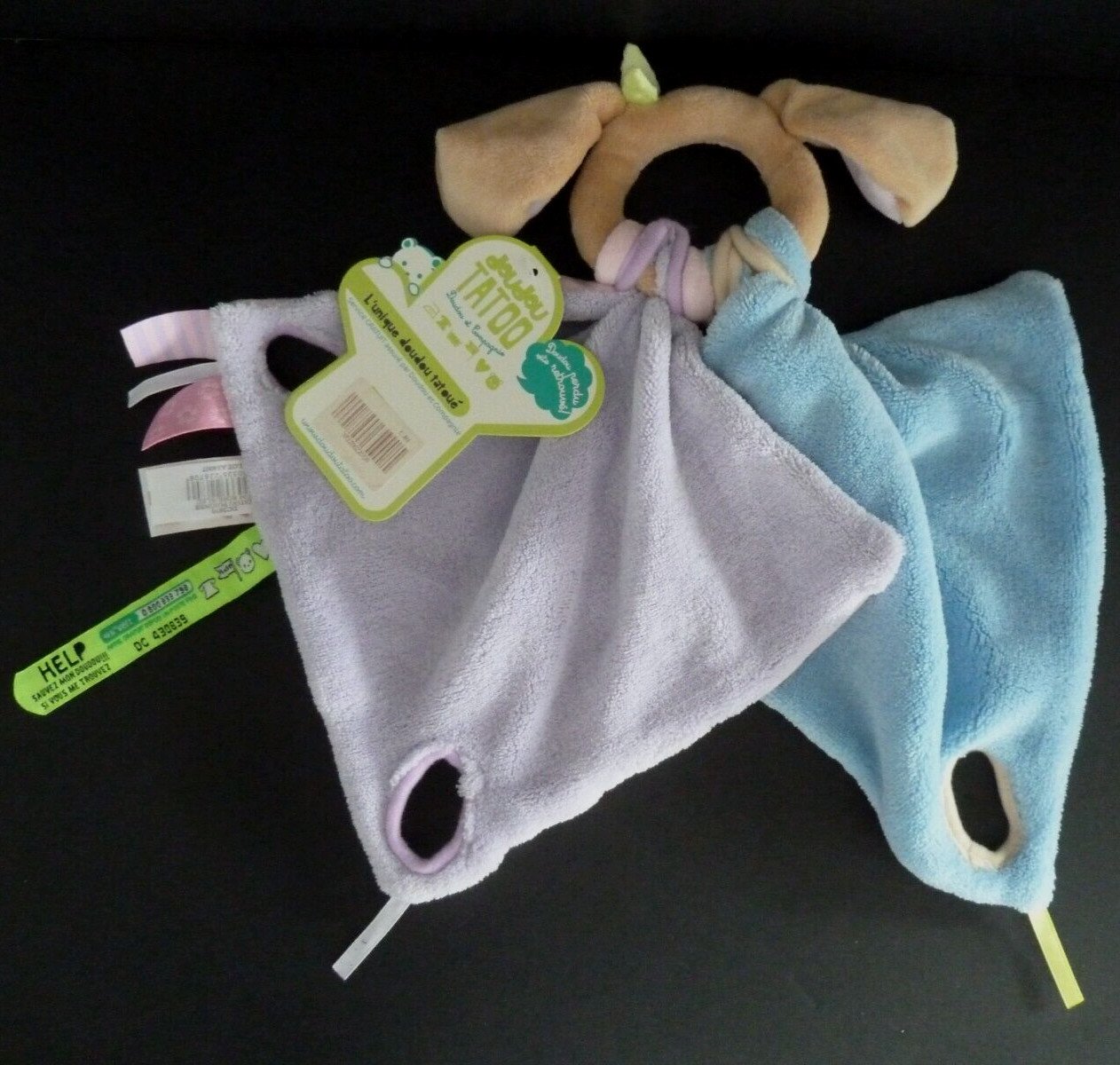TT. DOUDOU ET COMPAGNIE PLAT CHIEN LAPIN TATOO poignée rose mauve bleu 100% NEUF