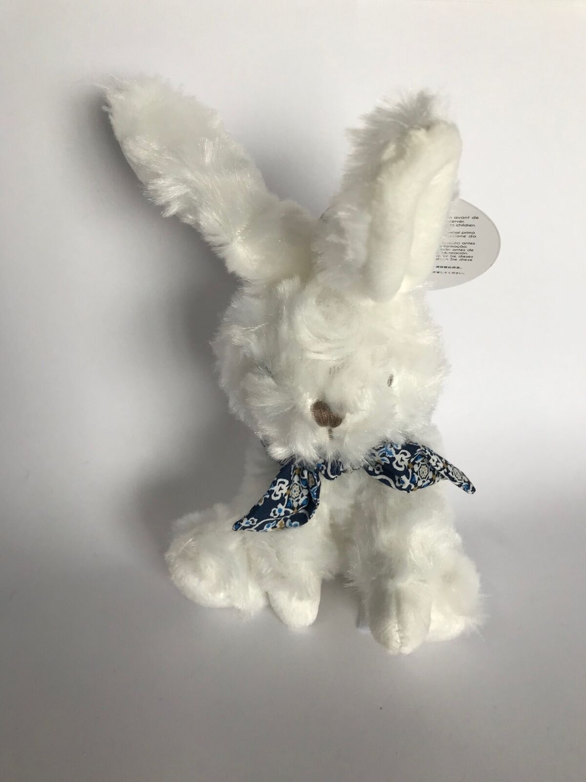 SD. DOUDOU ET COMPAGNIE PELUCHE LAPIN blanc bleu MOUCHOIR NOEUD DC3338 100% NEUF