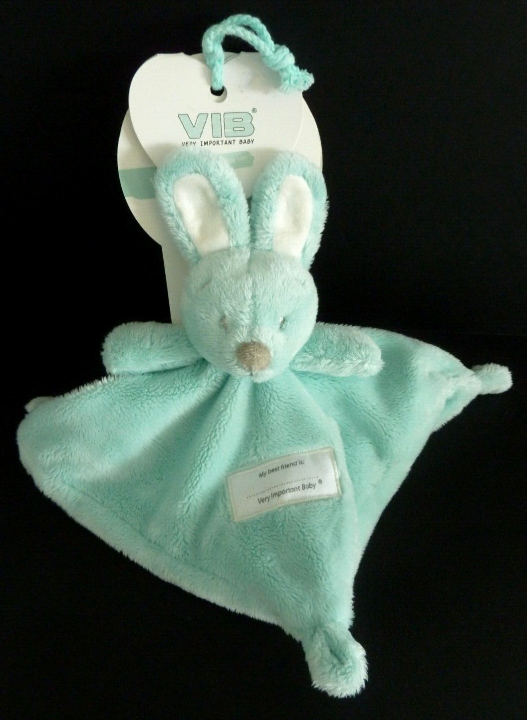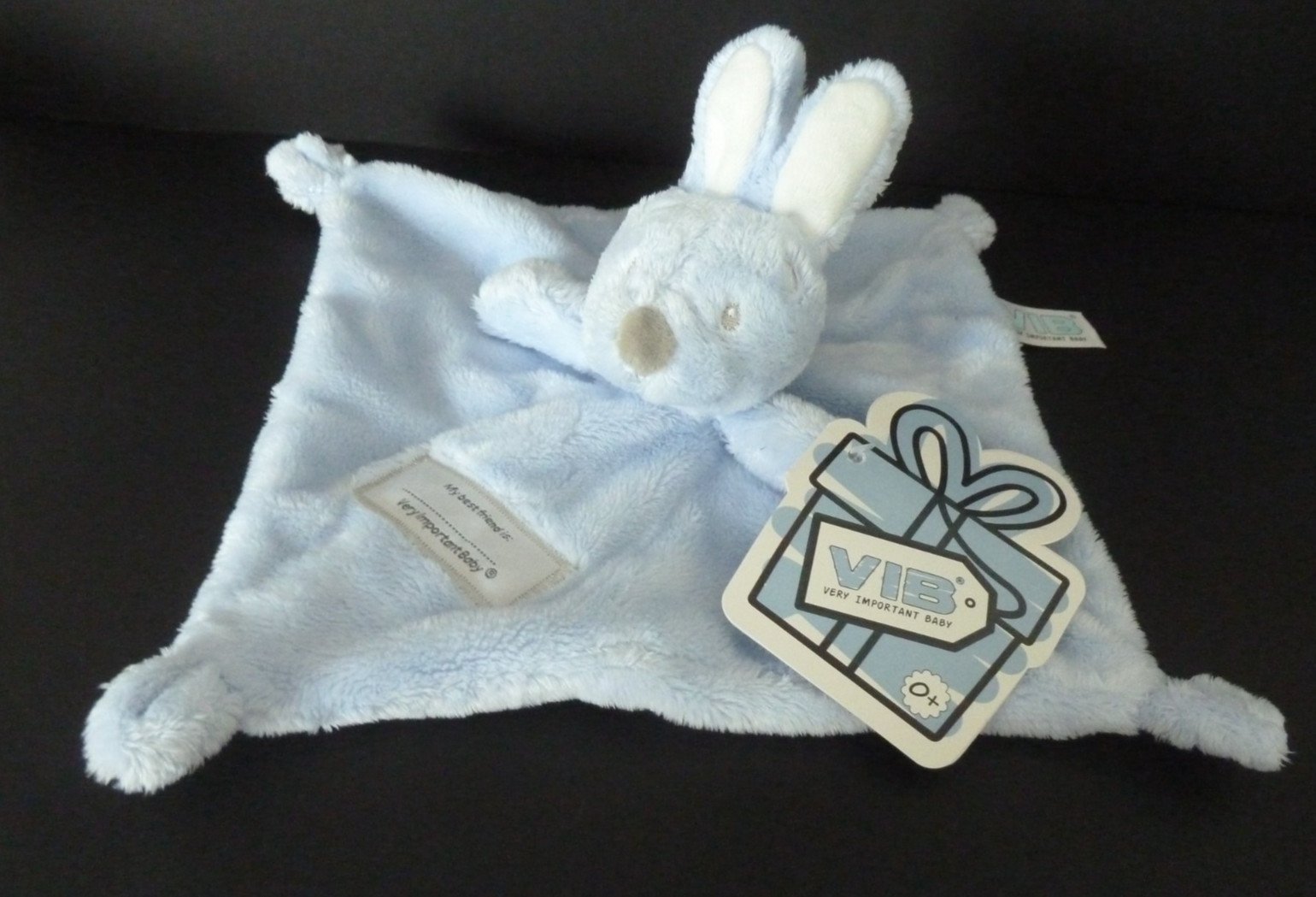 P9. Doudou plat VIB LAPIN bleu blanc gris Very Important Baby carré - 100% NEUF