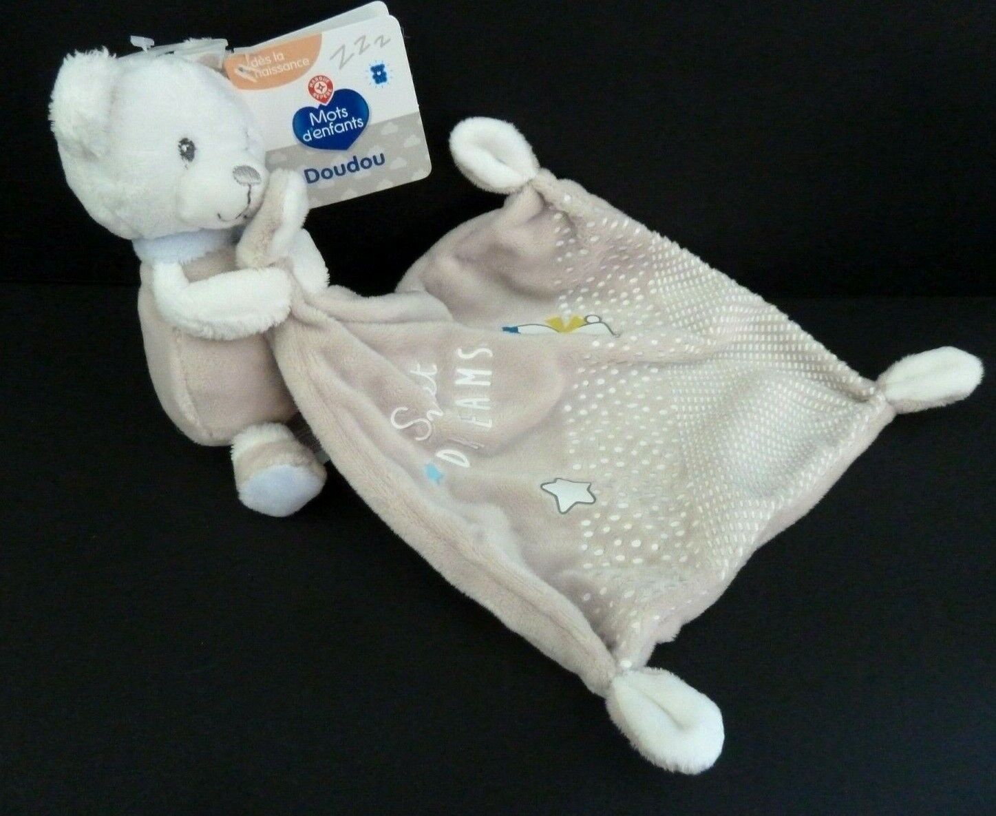 V12. DOUDOU PELUCHE MOTS D'ENFANT OURS BLANC GRIS BEIGE BLEU MOUCHOIR LAPIN NEUF