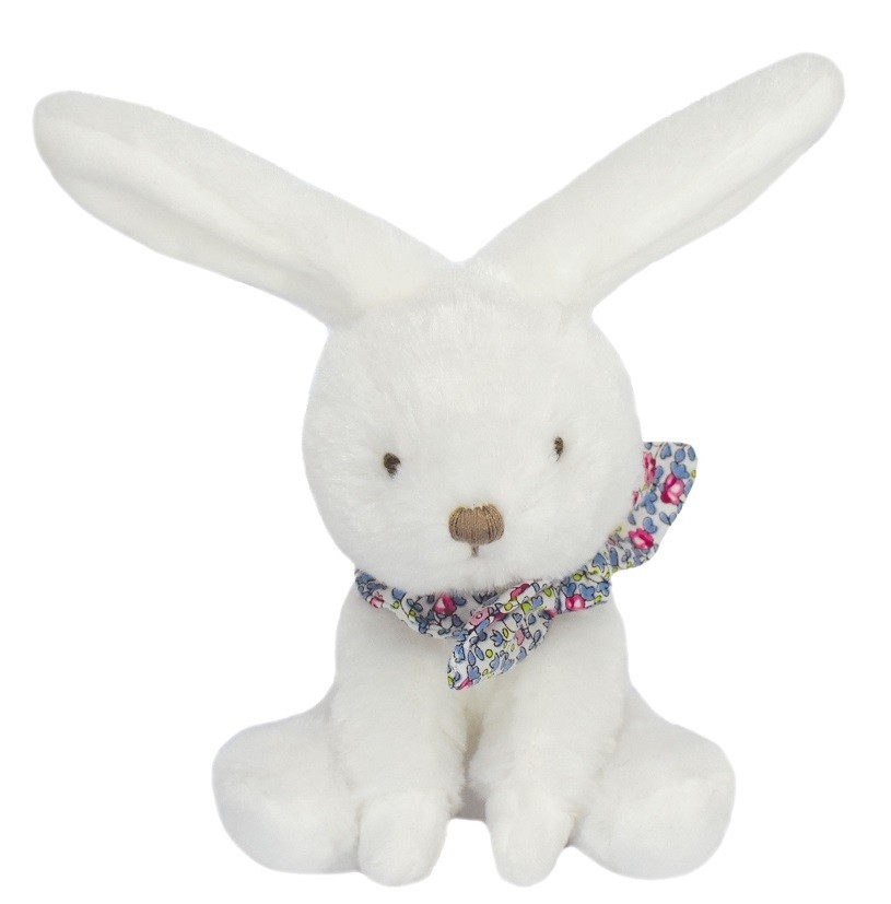 DOUDOU ET COMPAGNIE, Lapin chouchou doudou avec foulard Bleu fleuri, DC3818-01