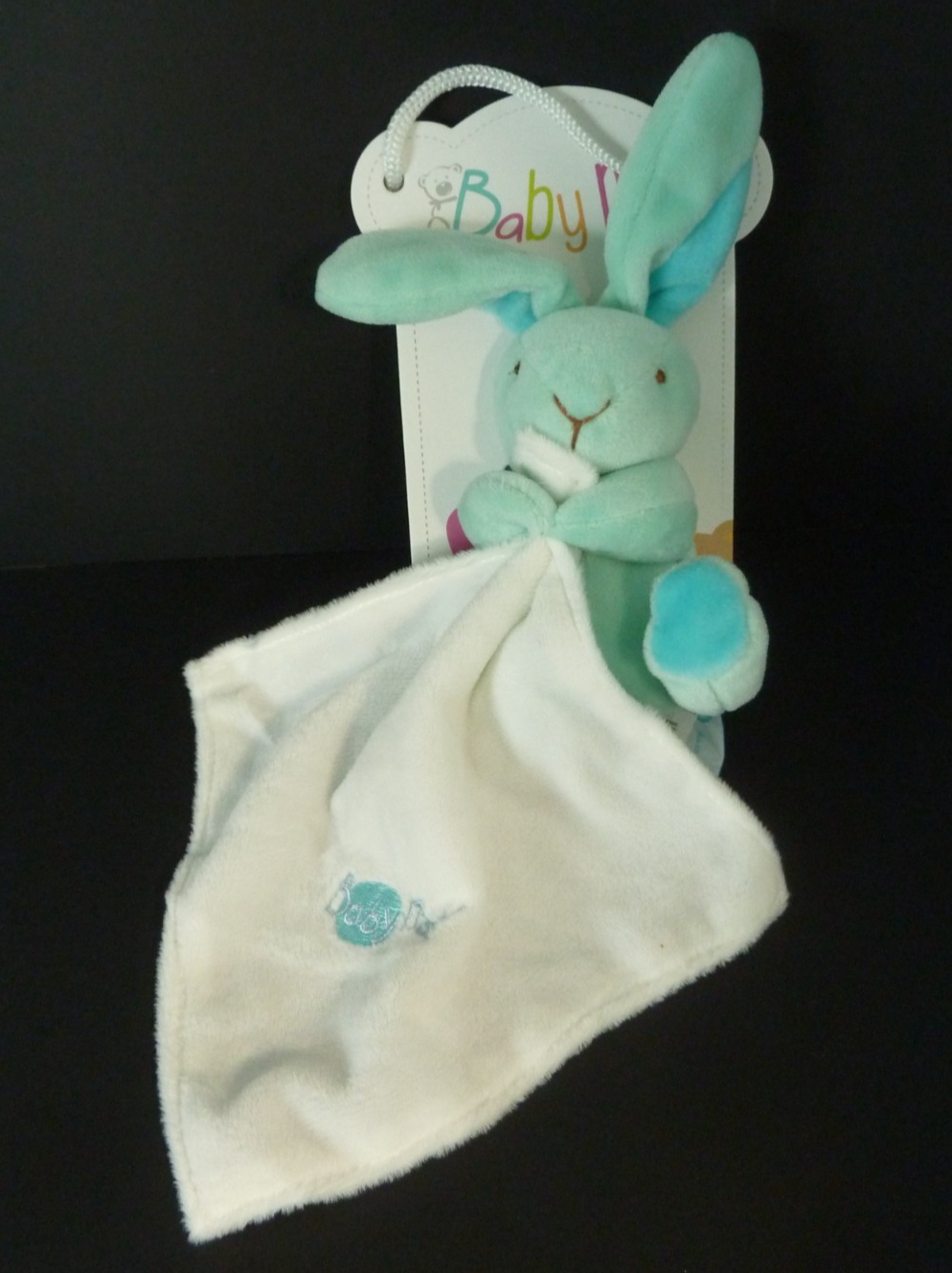 X12. DOUDOU BABY NAT LAPIN bleu turquoise mouchoir blanc BN956 - NEUF