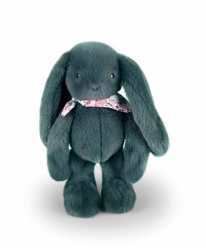 DOUDOU ET COMPAGNIE - Lapin Fleurette Eucalyptus 35 cm – Peluche Ultra Douce Vert Foncé – Doudou Bébé dès la Naissance – Foulard Fleuri – Cadeau Mixte - DC4305