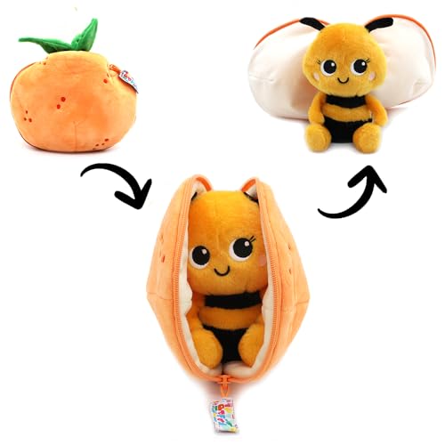 Les DÉGLINGOS - FLIPETZ - Doudou Buzzet l'Abeille/Clémentine - Abeille Cache-Cache réversible - Peluche Toute Douce pour bébé - Idées Cadeaux de Naissance, Jaune et Noir