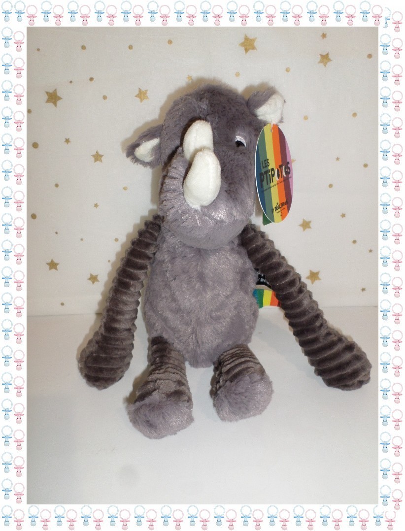 ㊳ - Doudou Peluche Rhinocéros Grobisou Gris Les Ptipotos Déglingos