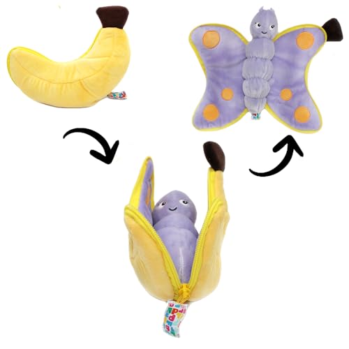 Les DÉGLINGOS - FLIPETZ - Doudou Poppet Le Papillon/Banane- Papillon Cache-Cache réversible - Peluche Toute Douce pour bébé - Idées Cadeaux de Naissance, Jaune et Violet