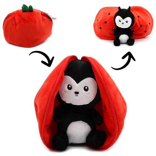 Les DÉGLINGOS - FLIPETZ - Doudou Comet la Coccinnelle/Tomate - Coccinnelle Cache-Cache réversible - Peluche Toute Douce pour bébé - Idées Cadeaux de Naissance, Rouge et Noir