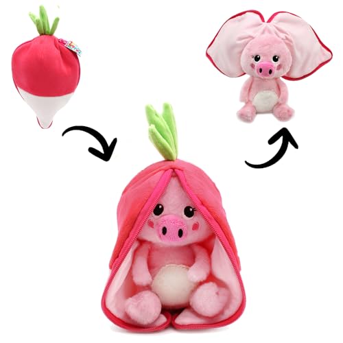 FLIPETZ Les DEGLINGOS Doudou Piglet Le Cochon/Radis- Cochon Cache-Cache réversible - Peluche Toute Douce pour bébé - Idées Cadeaux de Naissance, Rose et Blanc, 27 cm