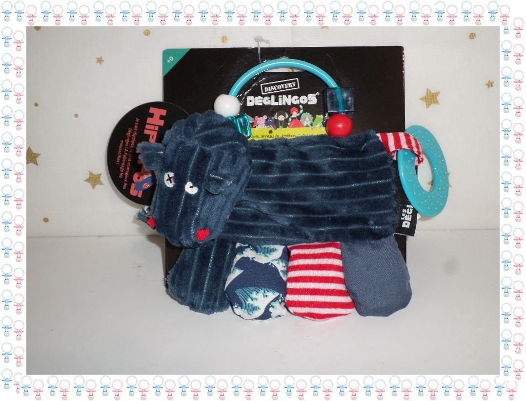 ㊳ - Doudou Hochet D'Activités Hippipos Hippopotame Bleu Rouge ..Les Déglingos