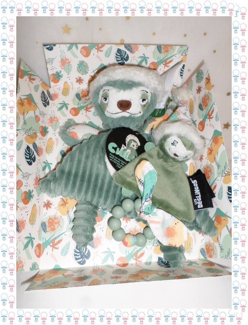 ㊳ - Coffret Doudou Eveil Activités Chillos Le Paresseux Anneau Les Déglingos