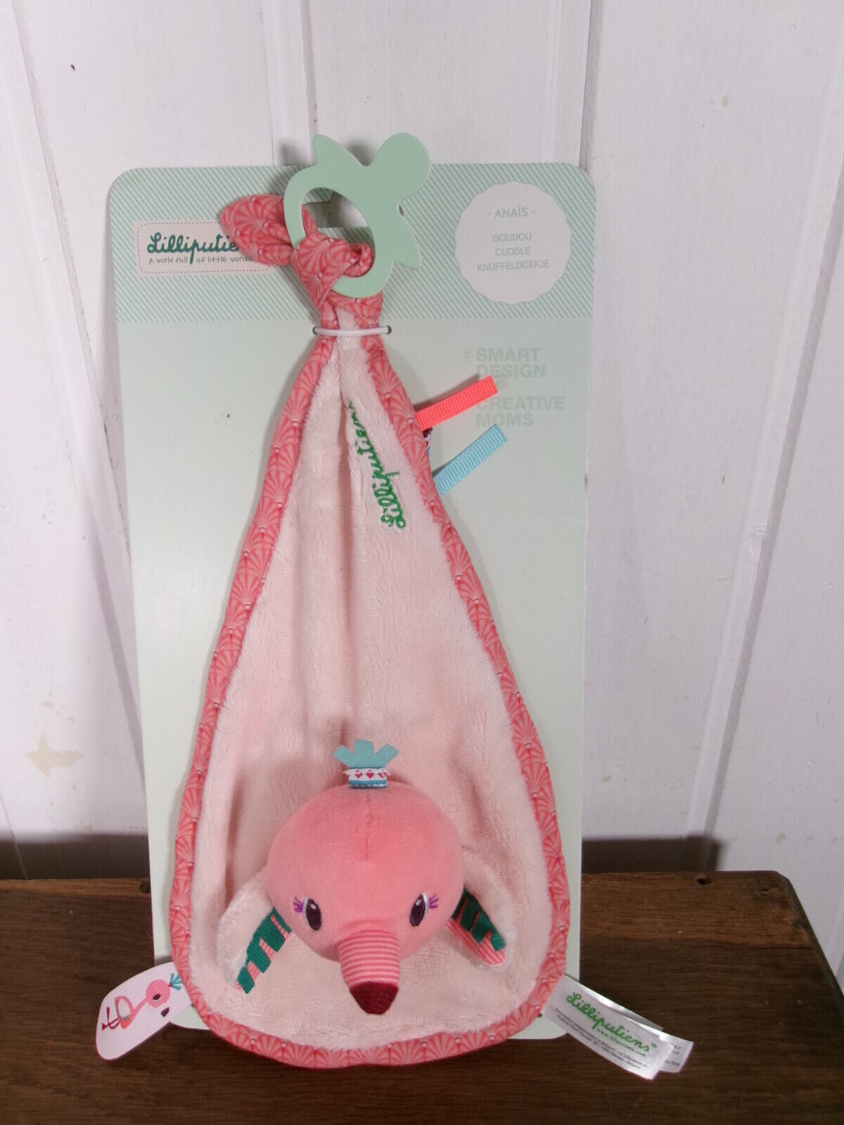 DOUDOU plat rose brodé Lilliputiens Anais flamand rose accroche sucette