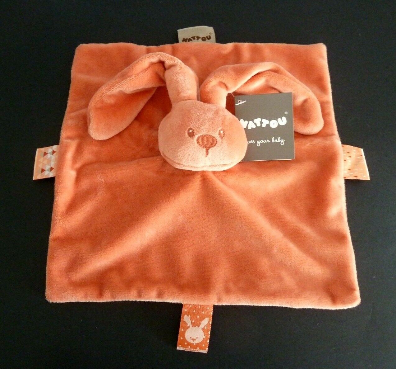 W9. DOUDOU PLAT CARRE NATTOU LAPIN LAPIDOU ORANGE NEUF AVEC ETIQUETTE